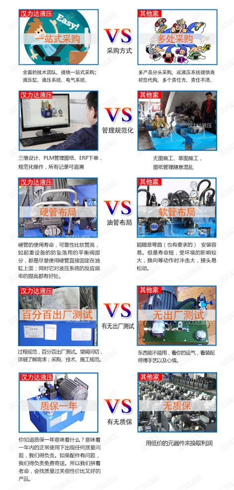 方案確認后,李總向我們詢問我們公司產(chǎn)品的質(zhì)量和價格。。宋先生給李總介紹了漢達的公司歷史,漢力達專注液壓行業(yè)19年了,油缸和液壓泵站一起配套提供的,一站式采購,比較方便,出了問題也只要找到漢達就行,不需要多頭聯(lián)系供應(yīng)商。而且標準液壓站的設(shè)計、加工流程都是非常規(guī)范的,圖紙PLM存檔,客戶資料EPR存檔,做過一次的所有記錄都有,以后照著那份做,液壓經(jīng)銷門店的液壓站便宜的原因之一是在于工人現(xiàn)場組裝,沒有圖紙沒有相關(guān)管理成本。另外漢力達的標準液壓站采用的是硬管布局,外觀精美,使用壽命長,同時它對液壓系統(tǒng)的反應(yīng)頻率的提高有好處。我們的產(chǎn)品質(zhì)保一年,避免售后成本高,我們的供應(yīng)商都是長期合作質(zhì)量穩(wěn)定的合作伙伴李總表示他們也是一樣,做任何一款產(chǎn)品,質(zhì)量性能的保證,才是客戶想要的。