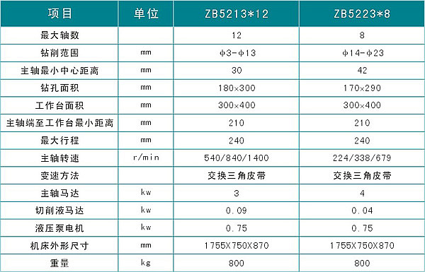 ZB5223*8立式多軸鉆床,是半自動(dòng)多軸鉆床,采用按鈕式操作,操作維護(hù)簡單,對工人技能要求低。