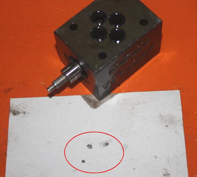結(jié)果我們從閥體中清理出很多的鐵屑(如下圖紅色框中),難怪會(huì)卡死。